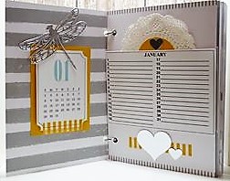 Good Morning Everyone! My Make It Monday Share comes from the Stampin' Up! December 2016 Paper Pumpkin Kit. When I received my kit last month, I was delighted to see the Another Great Year Rotary Stamp, a Basic Black Marker, patterned paper, window sheets, stickers and Washi Tape to create a scrapbook for 2017. Although the project for this month was already fantastic and easy to assemble, I decided to jazz up this kit just little bit more. I used the new One Great Year Calendar Download, a printable perpetual calendar, and the New Detailed Dragonfly Thinlits to create a Birthday Card Organizer. One of my goals is to actually mail Birthday Cards on time this year! By keeping each page layout the same, and only changing the months, my project quickly came together. My only other step was embellishing with extra accessories from the kit and Stampin' Up! Delicate White Doilies. Not only was this project more special, but also I got the added bonus of having a Rotary Stamp and Marker, that I could use on something else! Sign up HERE to enroll.